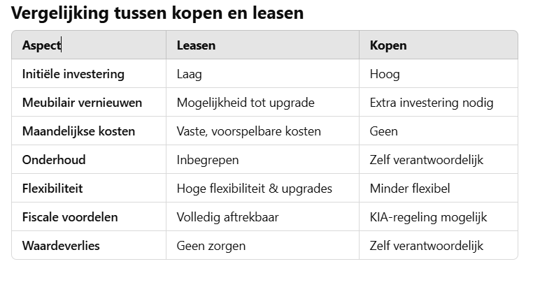 Wij blijven eigenaar van het meubilair, waardoor het bedrijf geen financiële risico’s loopt.
